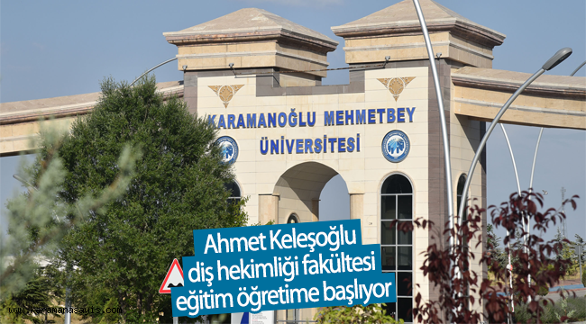 Karamanoğlu Mehmetbey Üniversitesi (KMÜ) Ahmet Keleşoğlu Diş Hekimliği Fakültesine öğrenci alınacak. Binası Ahmet ve Nezahat Keleşoğlu Vakfı tarafından yaptırılan fakülteye, KMÜ Rektörlüğünün teklifi ve Yükseköğretim Genel Kurulunun kararıyla 60 öğrenci alınması onaylandı.