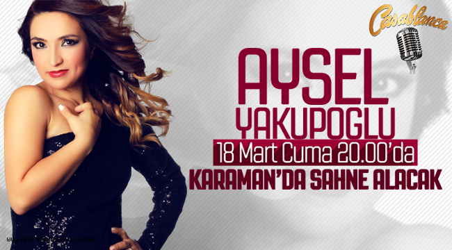 Türk müziğinin sevilen ismi Aysel Yakupoğlu, 18 Mart Çarşamba günü Casablanca organizasyon tarafından düzenlenen konserde Karaman'da Grand Otel'de sahne alacak.