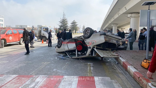 Karaman'da iki otomobilin çarpışması sonucu meydana gelen trafik kazasında, bir araç takla attı. 3 kişide yaralandı.