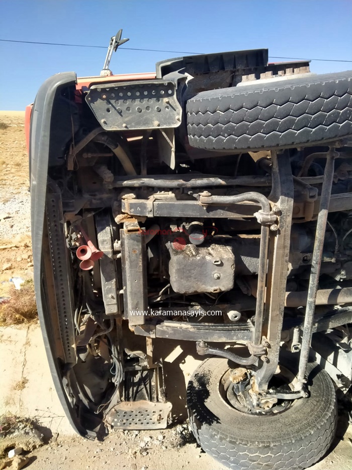 Karaman'da, seyir halindeki sürücünün kalp krizi geçirmesi sonucu meydana gelen trafik kazasında, tır şarampole uçtu, sürücü kaldırıldığı hastanede tedavi altına alıdı.