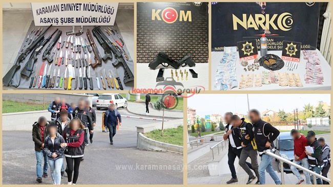 Karaman Emniyet Müdürlüğü'ne bağlı ekipler suçun önlemesine yönelik yaptıkları asayiş, narkotik ve trafik uygulaması gerçekleştirdi. 28 Ekim 03 Kasım tarihleri arasında yapılan uygulamalarda, 7 bin 990 şahsın sorgusu yapıldı. Çeşitli suçlardan aranan 20 şahıs yakalandı. 22 şahıs ise tutuklanarak cezaevine gönderildi.