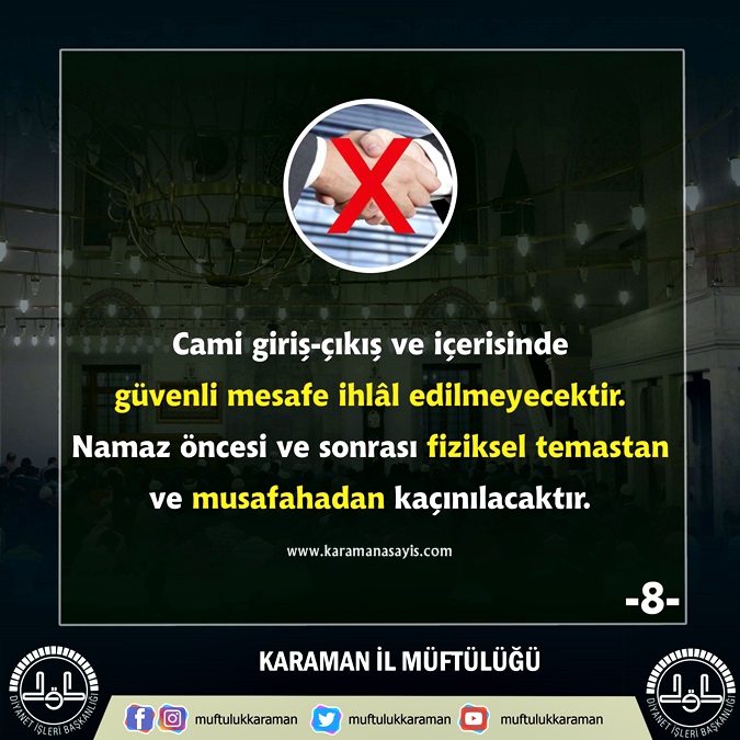 Karaman Müftülüğü Açıkladı Camilerde Uyulması Gereken Kurallar Karaman Müftülüğü, camilerin yeniden ibadete açılmasının ardından, cemaatle namaz kılmak isteyen vatandaşları uyması gereken kurallar hakkında uyardı. ABONE OL Dinle ABONE OL Editör: Zülküf Atael 28 Mayıs 2020 - 15:53 Paylaş Tweetle WhatsApp FACEBOOK YORUMLAR YORUMLAR 0 Yorum adlı kullanıcıya cevap karaman karaman asayiş karaman haber camilerde uyulması gereken kurallar koronavirüs cami 30 Ağustos Zafer Bayramı Kutlu Olsun Karaman Emniyeti 437 Yaya ve Sürücüyü Uyardı Mümine Hatun Çarşısı Açıldı Daha Modern ve Daha Kullanışlı Bir Hale Getirildi Milyonlarca Araç Sahibini İlgilendiriyor! Karaman'da Camiler Cumaya Hazırlanıyor