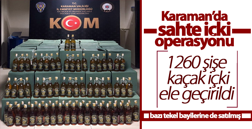 Göz altına alınan şahsın evinde yapılan aramada 1260 şişe gümrük kaçağı içki ele geçirildi. Ele geçirilen kaçak içkilere polis ekipleri tarafından el konulurken, kaçak içkilerden bir kısmı da Karaman'da satılan bazı tekel bayilerden toplandı.